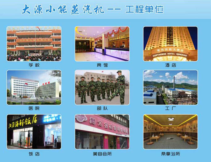 醫(yī)院,學校,紡織服裝行業(yè),大型超市,酒店賓館,食堂餐廳,食品飲料行業(yè),酒廠,制衣廠,印染廠,制藥廠,包裝廠,建材廠,涂料廠,飼料廠,塑料廠,橡膠,游泳館,洗浴中心,小區(qū)居民樓取暖,實驗室,茶葉藥材烘干,其他